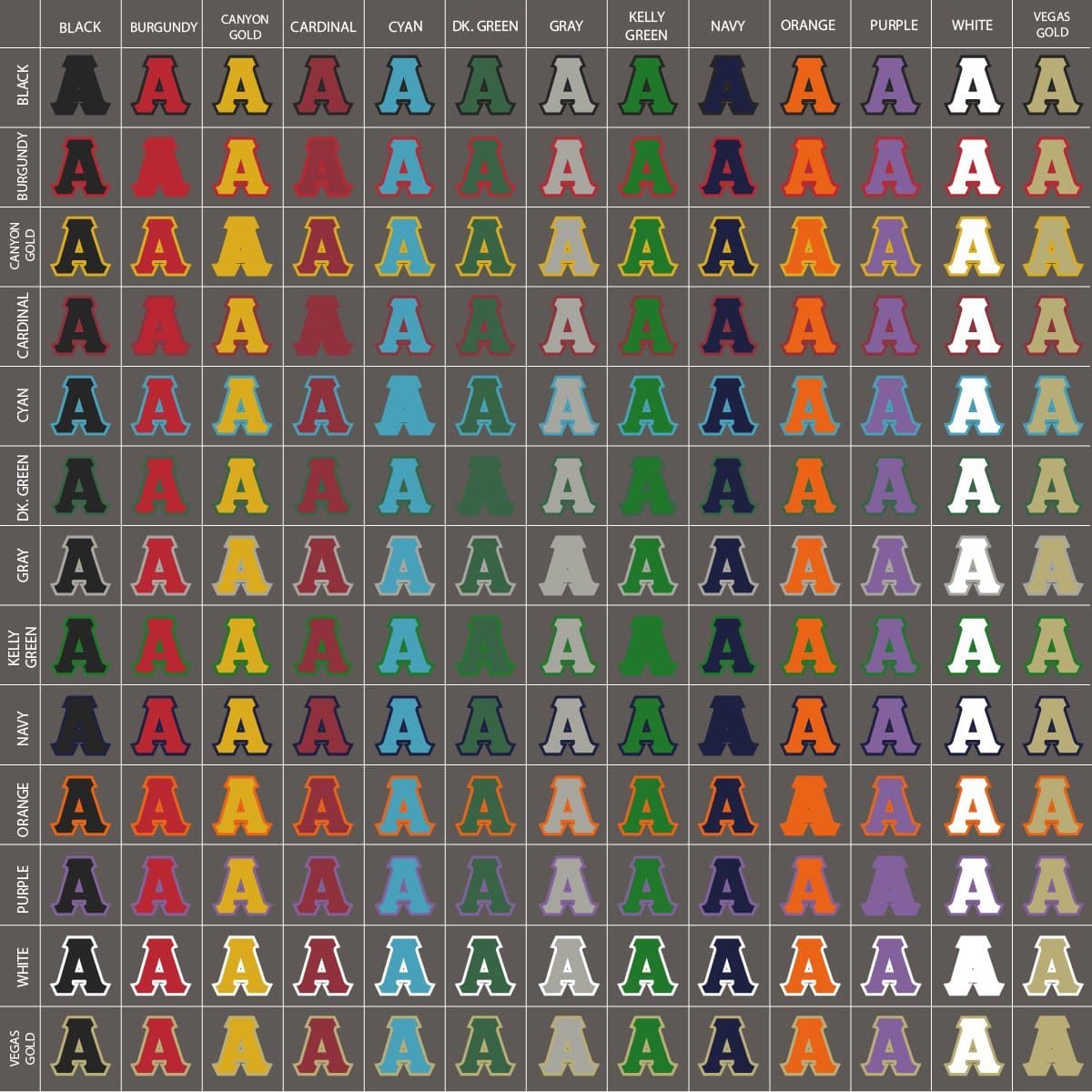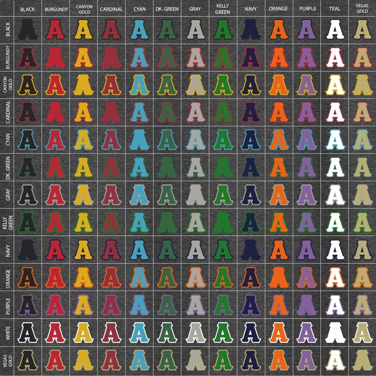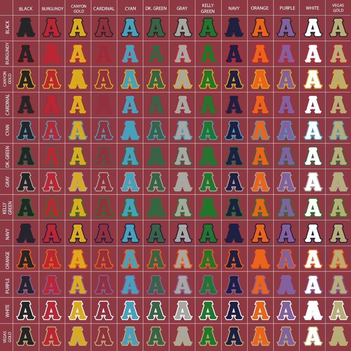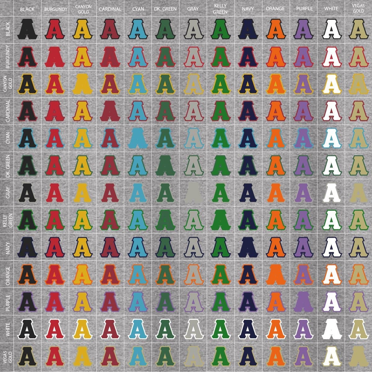 Create one-of-a-kind custom AEPi letters, totally unique to you! Choose a color hoodie, outer letter twill color, and inner twill color for a look that's your own. Whether it's colored special to Alpha Epsilon Pi or just a fun combination, this makes a great keepsake or gift to your favorite Greek. Reference the images to see how your chosen combination could look together!