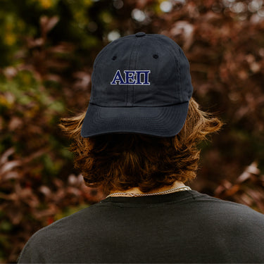 Nothing beats a black ball cap. With AEPi's colors representing your Greek letters embroidered on a classic black cap, this relaxed hat will soon become your go-to for any occasion. It is made from garment-washed twill and features an adjustable slide buckle closure. This Alpha Epsilon Pi black hat is sure the have all of your fraternity brothers envious of your impeccable style.