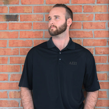 Make a good impression in this Alpha Epsilon Pi Nike performance polo. Whether you're on the golf course, at work, or networking, you'll look stylish and professional. This polo is made of Nike Dri-Fit fabric and embroidered with your Greek letters. The polo features a flat knit collar, open hem sleeves, and a soft touch.